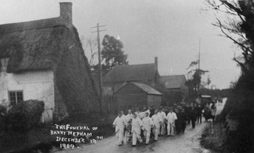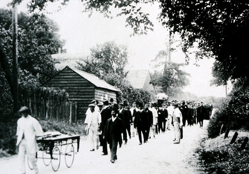 The funeral procession of Edwin Knight, a sinker at nearby Snowdown Colliery, just above Holt St cross-roads in 1907