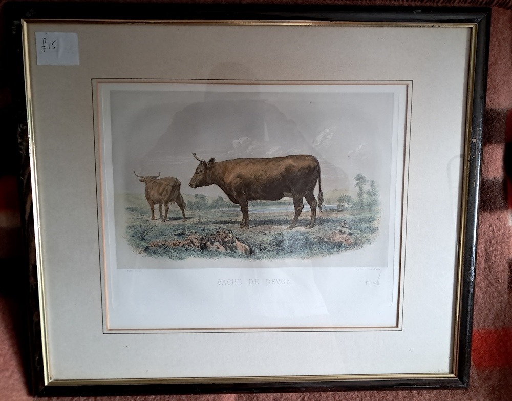 Six original framed coloured heliogravure prints from:- From: ‘Les Races bovines au concours universel agricole de Paris en 1856. Etudes zootechniques publiees par ordre de s. exc. le ministre de l’agriculture du commerce et des travaux publics’ by Emile Baudement. Published by Imprimerie Imperiale, Paris, 1862.