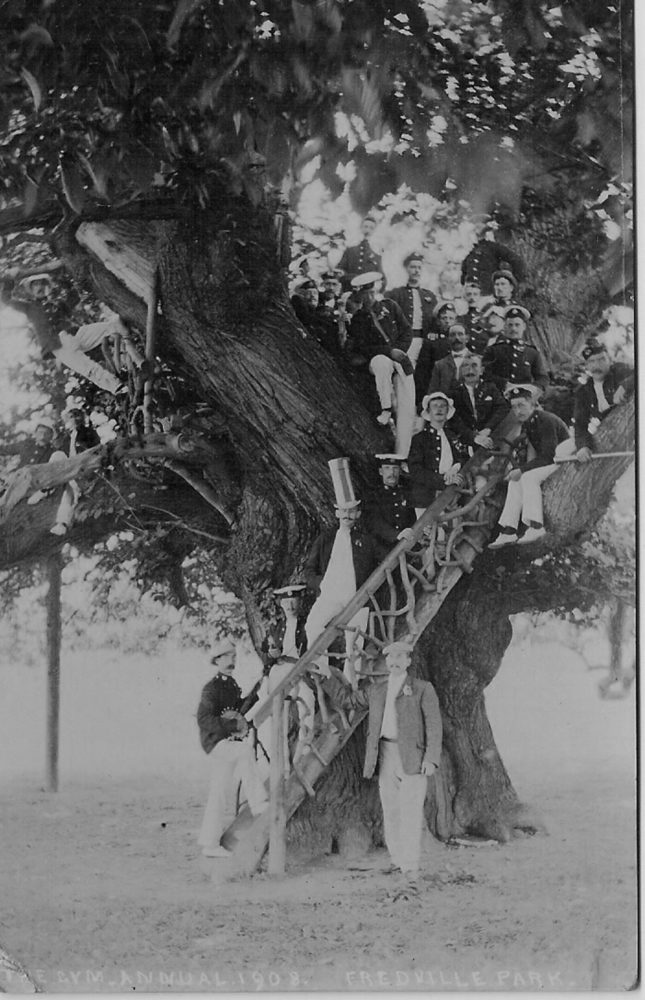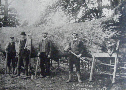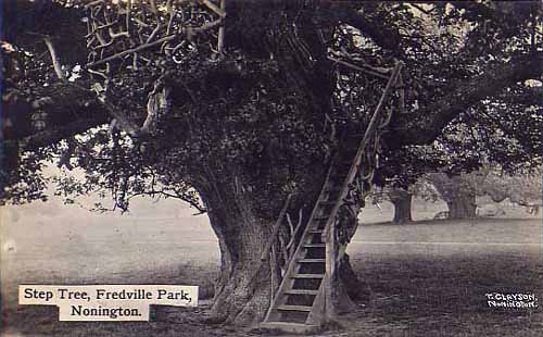 In the 1930’s Dr. Hardman, a noted East Kent historian recorded the memories of Richard Jarvis Arnold of of life in Nonington in the 1880’s & 90’s. Mr. Arnold, a blacksmith born in Nonington but who later lived and worked in Walmer, recollected: “The trees of Fredville Park were well known. In addition to the old oak there were some large chestnuts. One was called the ‘Step Tree’ and had some steps affixed to it. In the upper part of the trunk and branches 12 or 20 people could sit”.